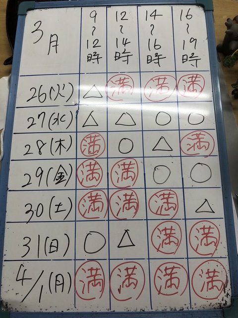 卒業式の準備で早朝から営業してますが、それ以外の時間帯は余裕あります。
