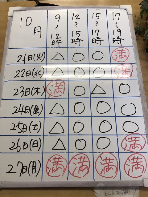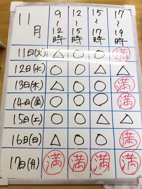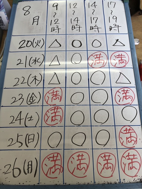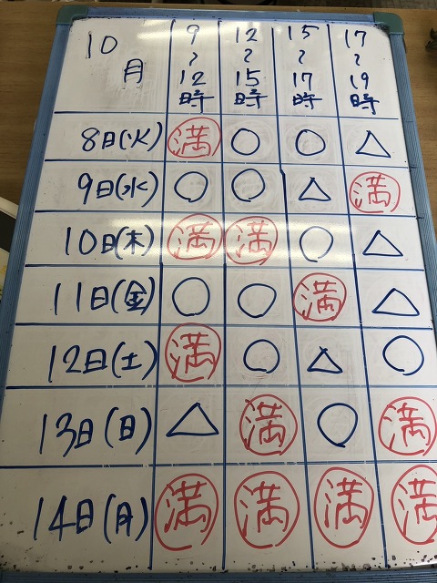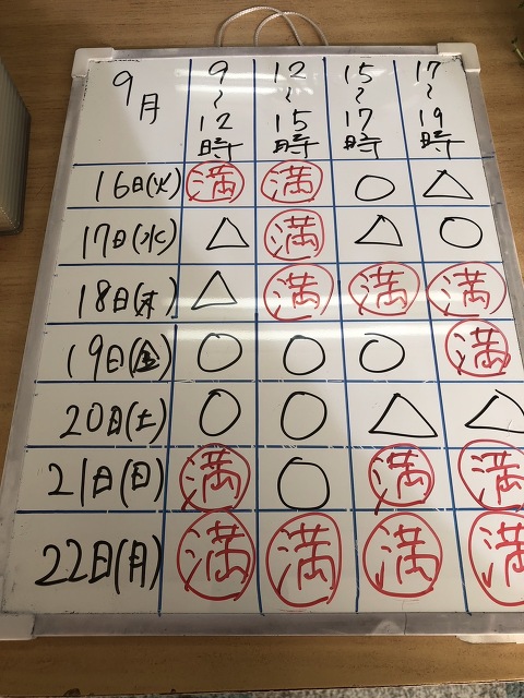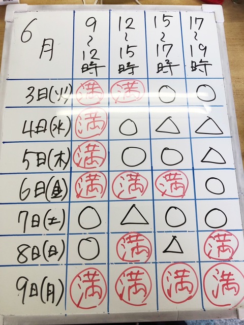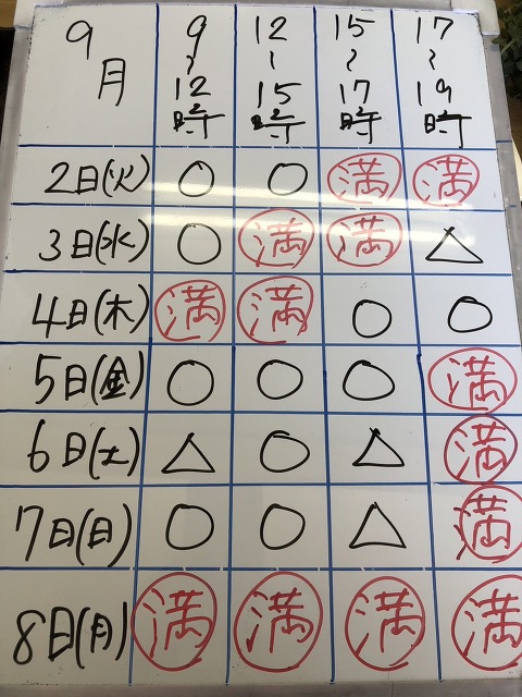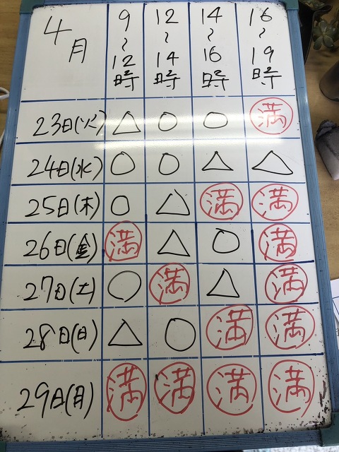早めのご予約ですと、こちらの都合での時間ロスが少なくなります。