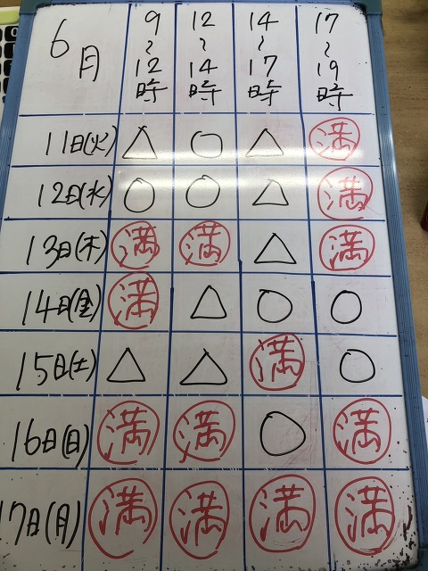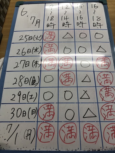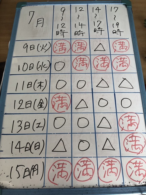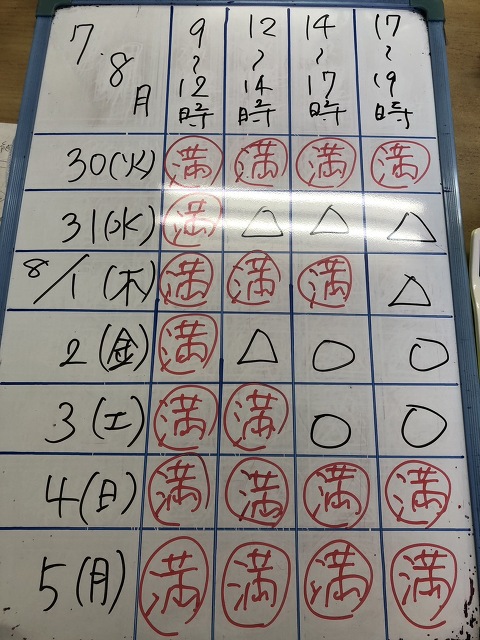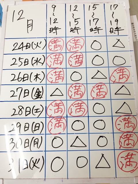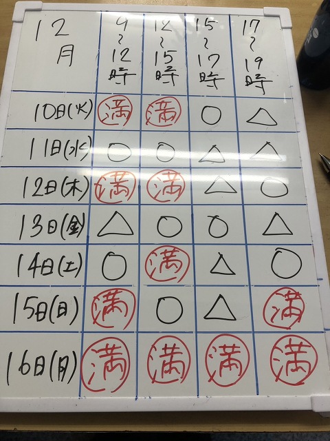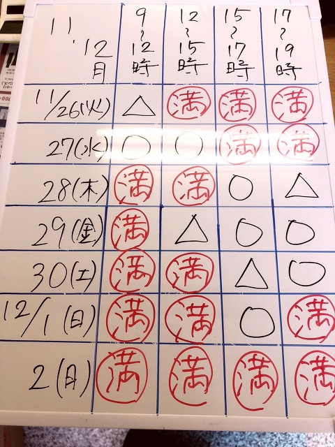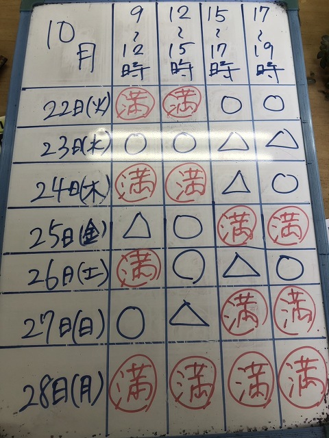 17~31日まで予約状況 | 筑前町 美容院 予約状況