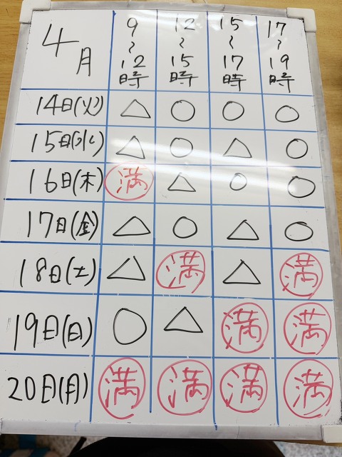 4月14日から4月20日までの予約状況です。